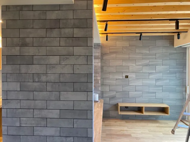 タイルと石でデザインしました!