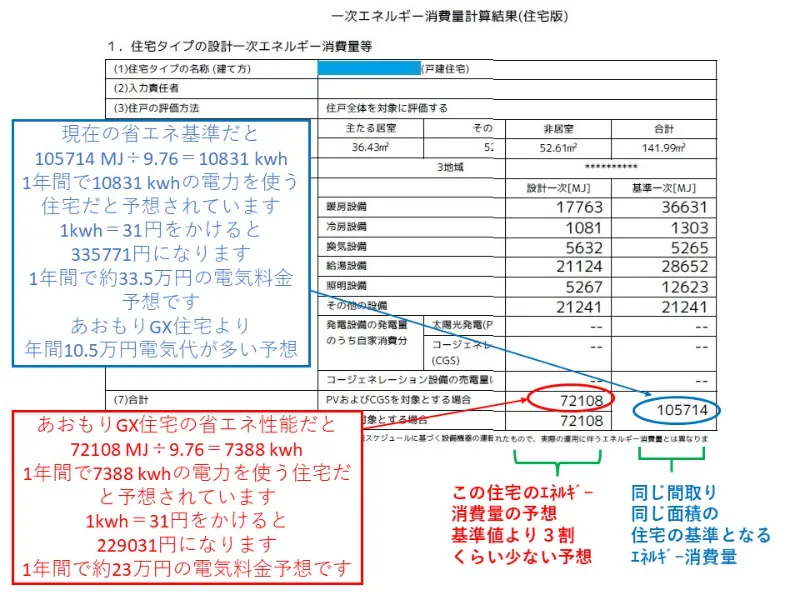 あおもりGX住宅の省エネ基準で断熱を強化すると23万円くらいに抑えられますよ と読み取れます