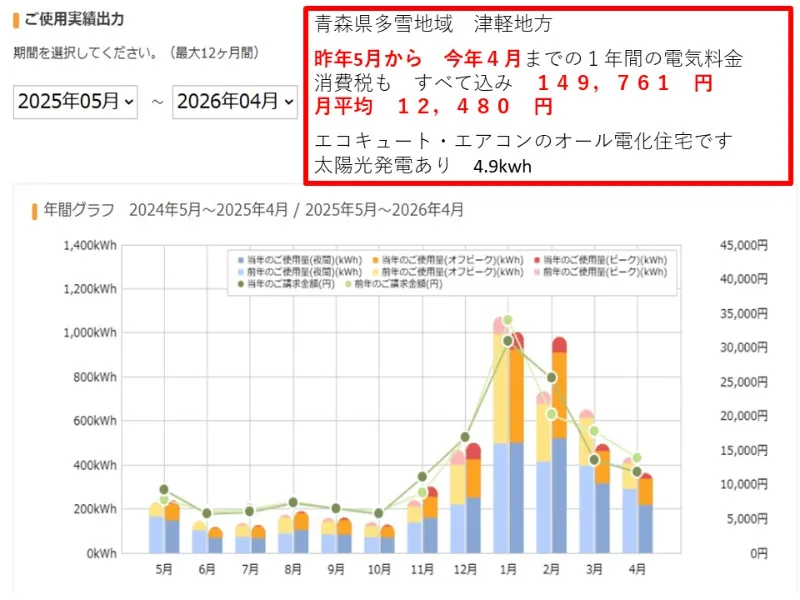 昨年5月から 今年4月までの 一年間の電気代金 149,761円
