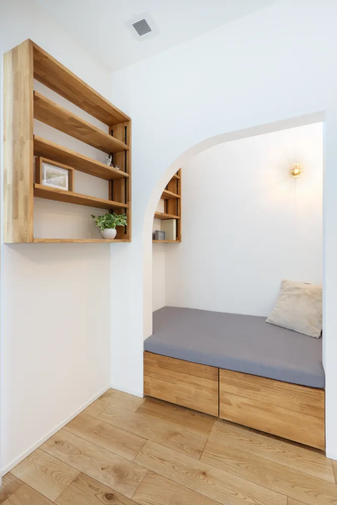 上着やランドセルなどを保管できるスペース。 ここで子供がランドセルを背負って玄関へ! 帰宅後もお出かけ前もスムーズ。自然と片付く“家事ラク動線”。