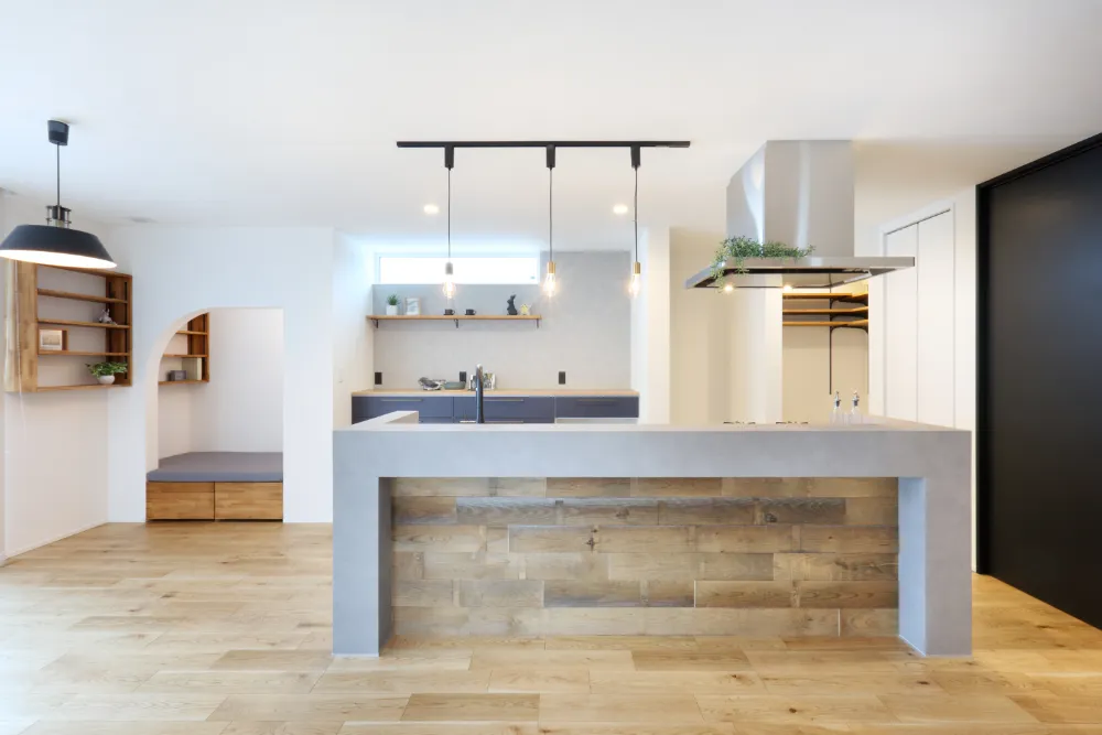 家族とのコミュニケーションが取りやすいアイランドスタイルのキッチン。 家具のように空間に溶け込み、フラットな天板がLDKをより広く見せてくれます。