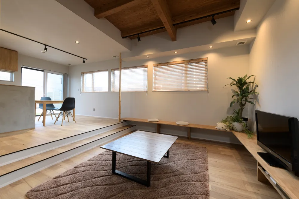 2階リビングは広く取れる為、贅沢な使い方が出来ます。 お施主様がダイニングとは別に座卓も置きたいというリクエストがありました。 食事の後はこちらでリラックスできます。