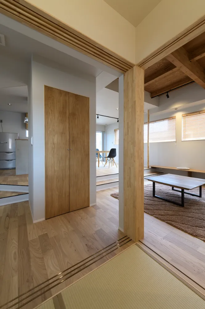 リビングにつながる和室。 様々な使い方が出来ます。 布団も入る大きな収納も付けました。 ゲストルームとしても使えます。