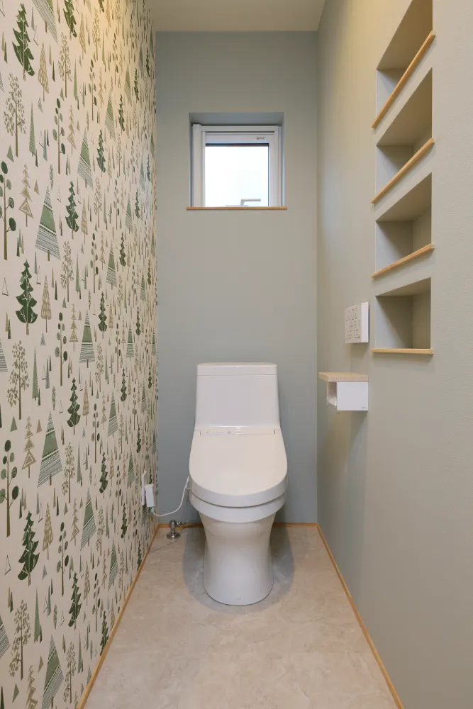 お施主様こだわりのグリーンのガルバリウムの外観。
