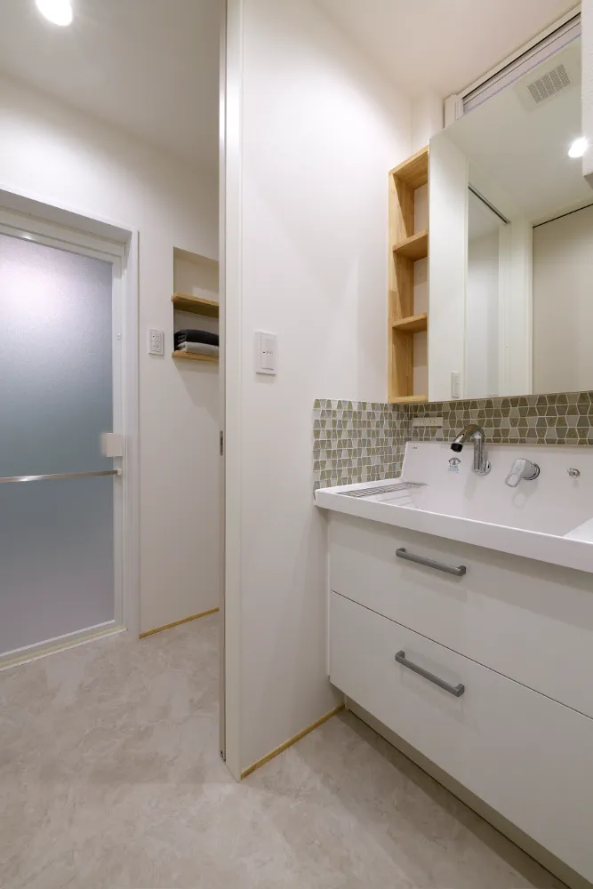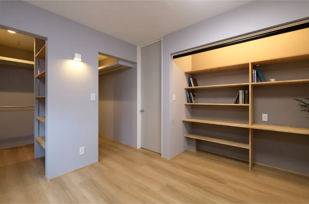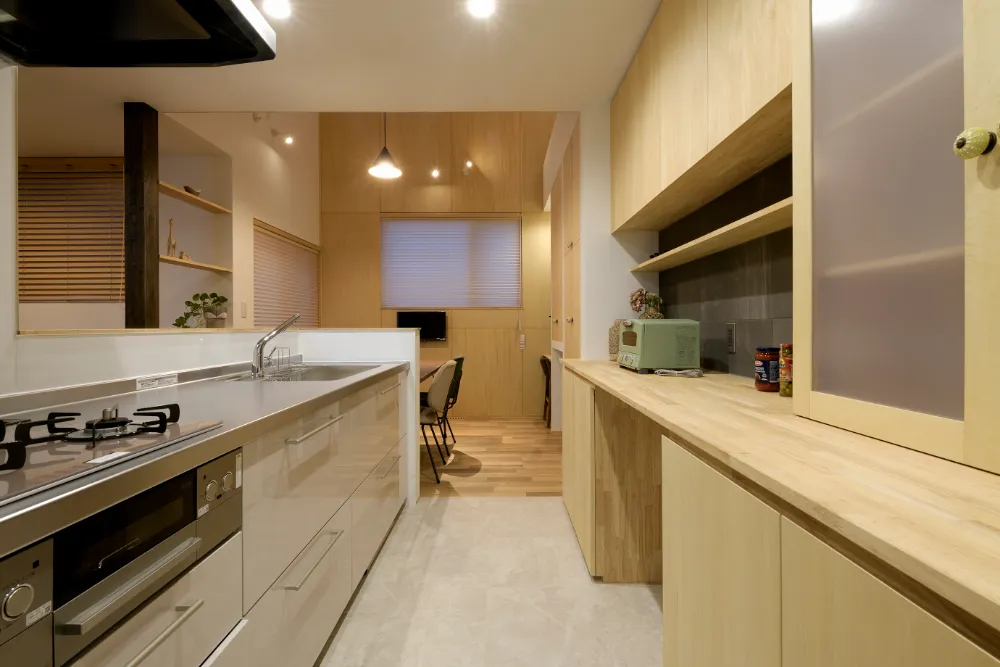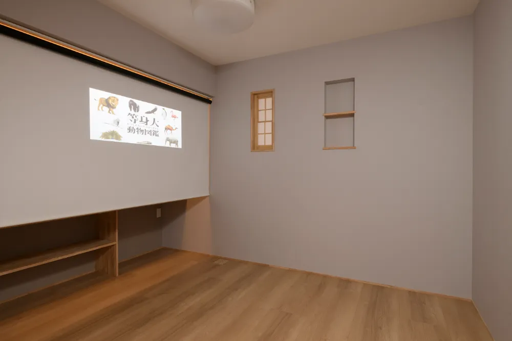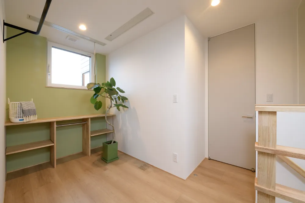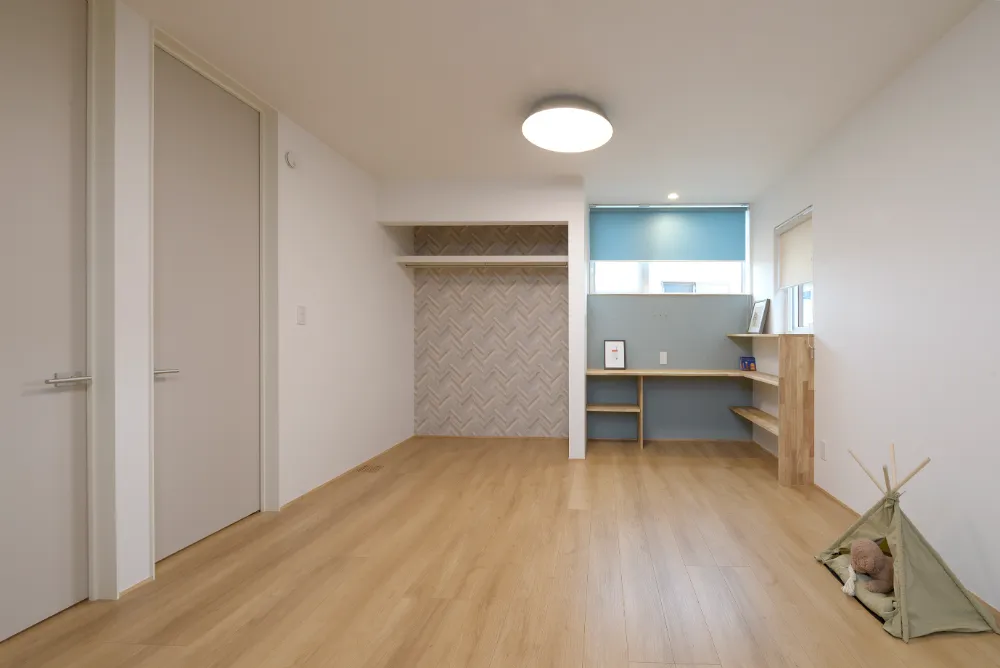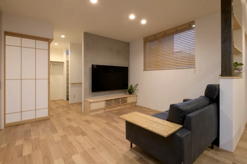元気なお子様が走り回れるリビングというリクエストで計画しました。 リビングにつながる和室を開けると広く使うことが出来ます。