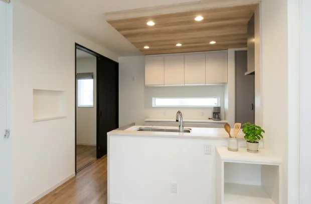 家族とつながる、モダンな木目調キッチン