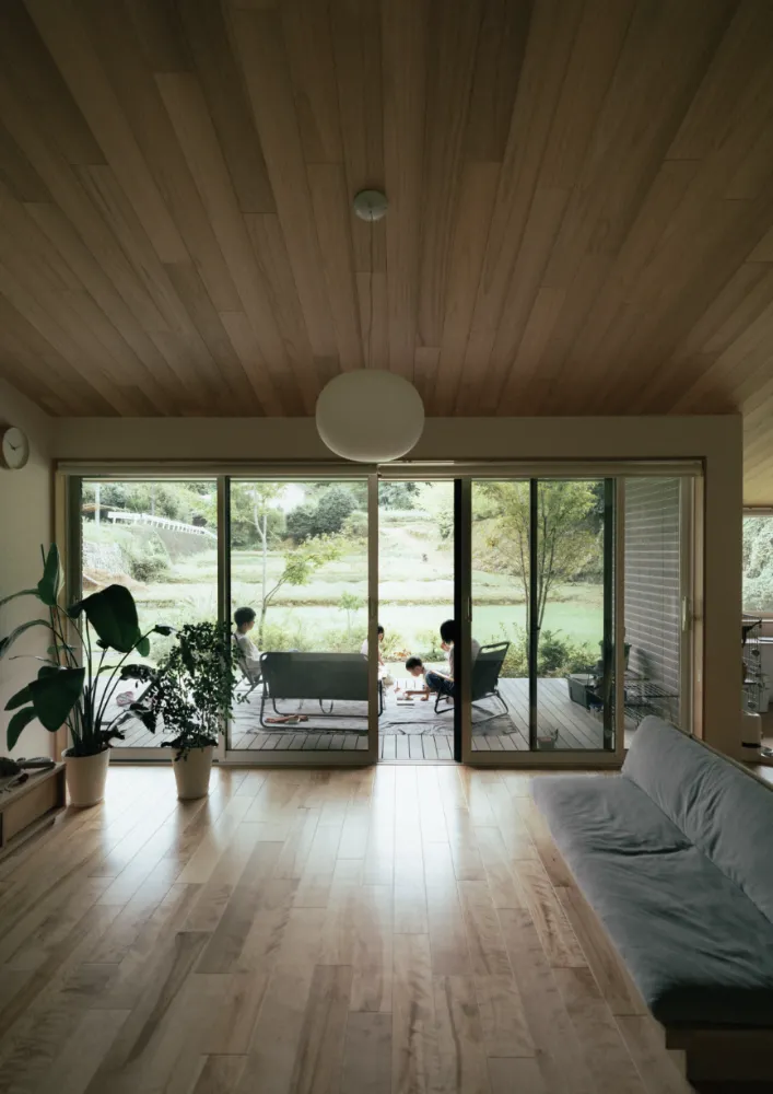 担当者:室内の床と高さを揃え、視覚的にも一体感が出るようにしています。 また、深い軒を設けることで、日差しをやわらかく調整し、夏でも涼しく過ごせる場所にしました。