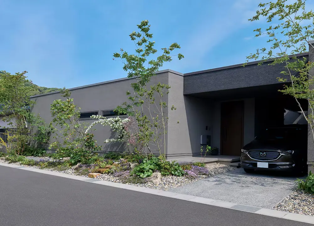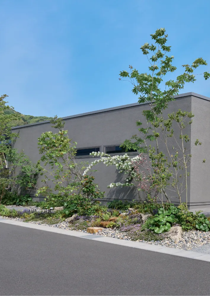 担当者:素材や色味は主張しすぎず、周辺環境との調和を重視しました。新築でありながらも、もともとそこにあったかのように感じられる外観を意識して設計しています。
