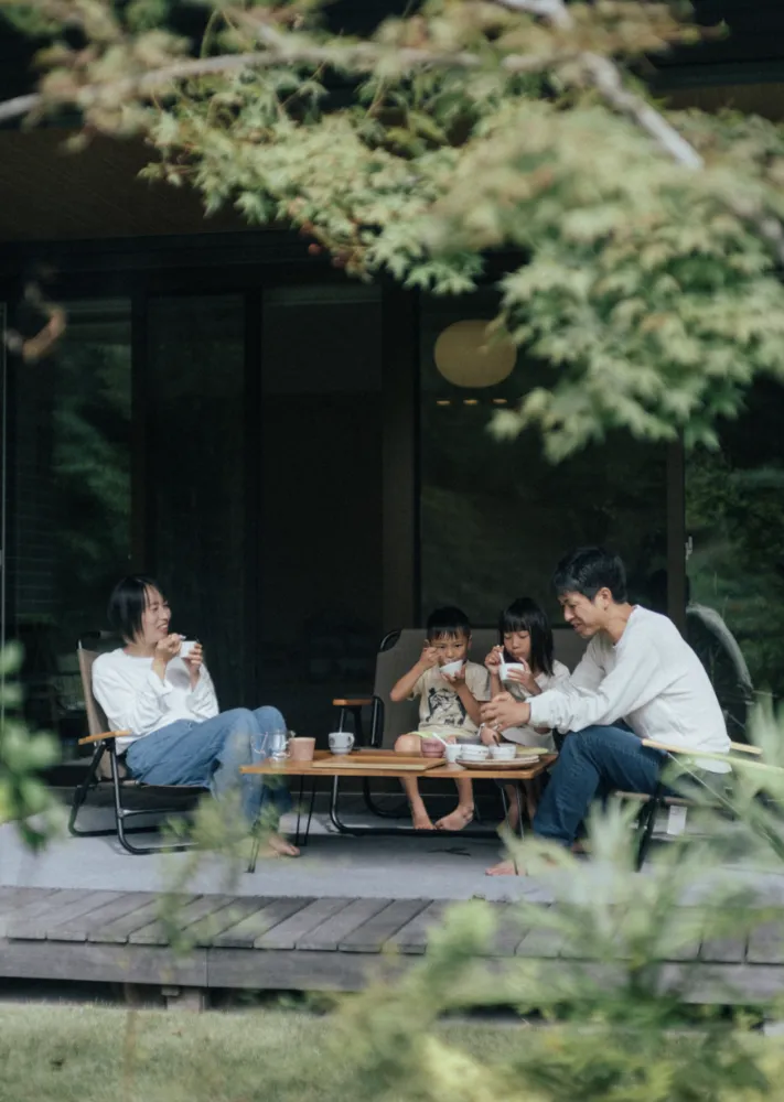 N様:ウッドデッキは、子供の遊び場であり、私たち夫婦のくつろぎの場。休日は朝食を食べてから、ずっとここで過ごしたりします。リビングから気軽に行けるのも嬉しいポイント。