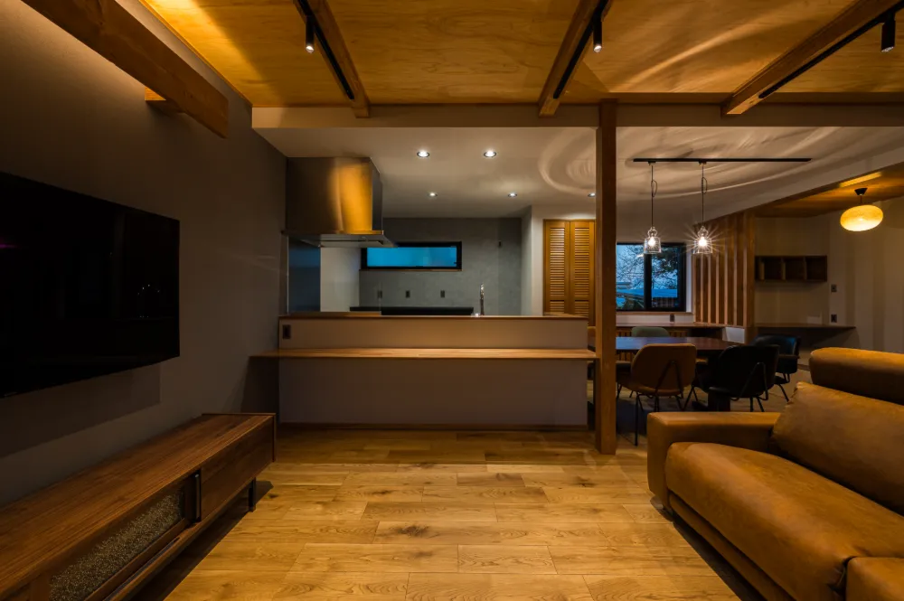 「こんなニッチ作れますか?」ふとした一言から始まった家作り アクト建築社は高断熱が売りと聞いてやってきたオーナー様 ランニングコストや生活導線を楽にする間取りが好みとの事で早速プランニングの話となりました。 何をするにも決断が早く驚かされることもしばしば、、、 土地も即決でプランもほぼほぼファーストプランで決定! リビング天井のパイン材の羽目板や正面のレッドシダーなど随所に木の温もりを感じれるお家となりました。 UA値 0.26W/㎡・K C値 0.21㎠/㎡ 1階 床面積 65.41㎡ 19.74坪 2階 床面積 43.88㎡ 13.24坪 延床面積 109.29㎡ 32.99坪 土地面積 230.65㎡ 69.63坪