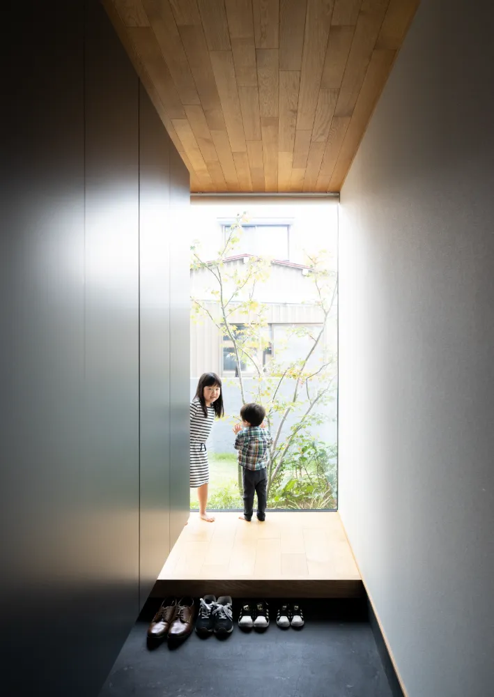 前庭はまちなみと調和した空間、中庭は家族のための場所、北庭は敷地の広がりを表現しています。役割を分けることで、外構も含めた住まい全体の完成度を高めています。