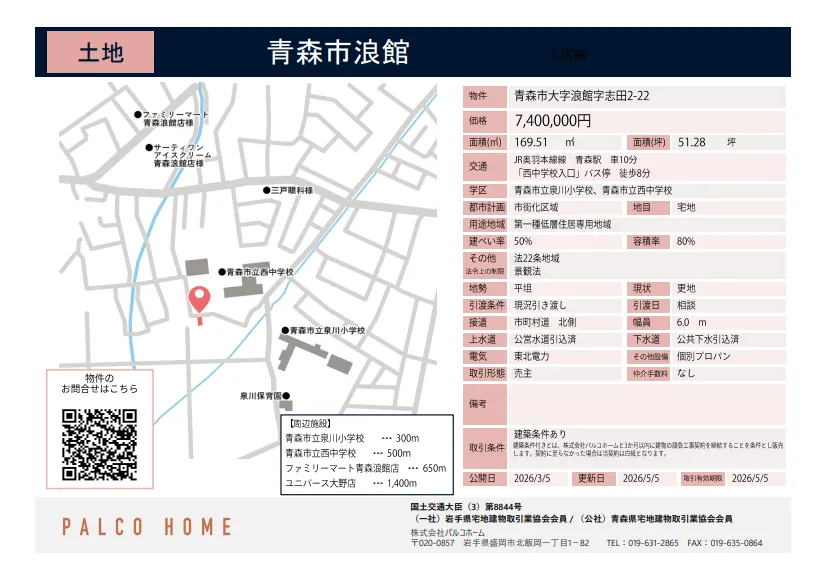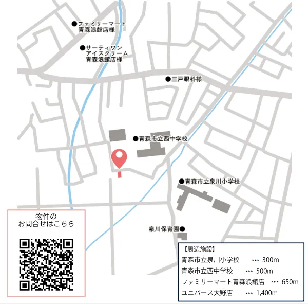 奥羽本線線 青森駅 車 10 分 「西中学校入口」バス停 徒歩8分